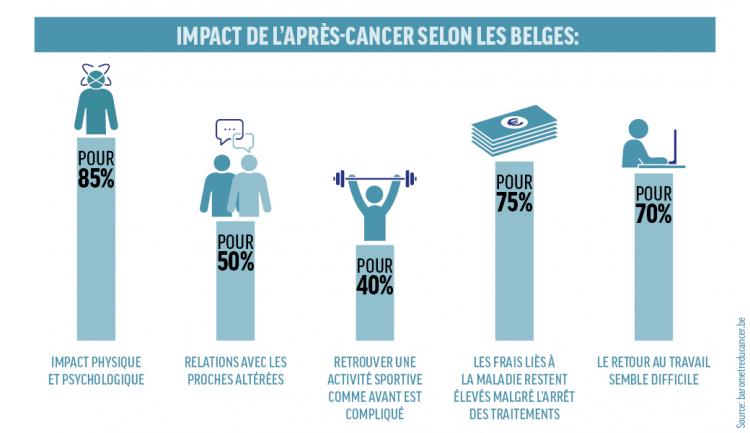 On gagne de plus en plus souvent contre le cancer. On estime aujourd'hui, le taux de survie à cinq ans après un cancer à 70%. Mais la vie après cancer reste largement ignorée.Il y a 40 ans, la vie s'arrêtait après un cancer. Aujourd'hui, près de sept fois sur dix, on y survit. « C'est une moyenne. C'est très variable d'un type de cancer à l'autre, de sa localisation et du stade auquel la maladie est découverte », précise la fondation contre le cancer. En attendant, les survivants sont de plus en plus nombreux et ce sont souvent de jeunes adultes entre 30 et 50 ans. L'étape d'après peut être difficile. « Les personnes manquent tout d'abord d'informations. Il est normal d'être fatigué après avoir subi un traitement contre le cancer. Les symptômes dépressifs sont fréquents aussi. Et on peut éprouver des difficultés à retourner au travail », explique Magali Mertens de Wilmars de « Vie et cancer ». Un article paru dans la Magazine Moustique.